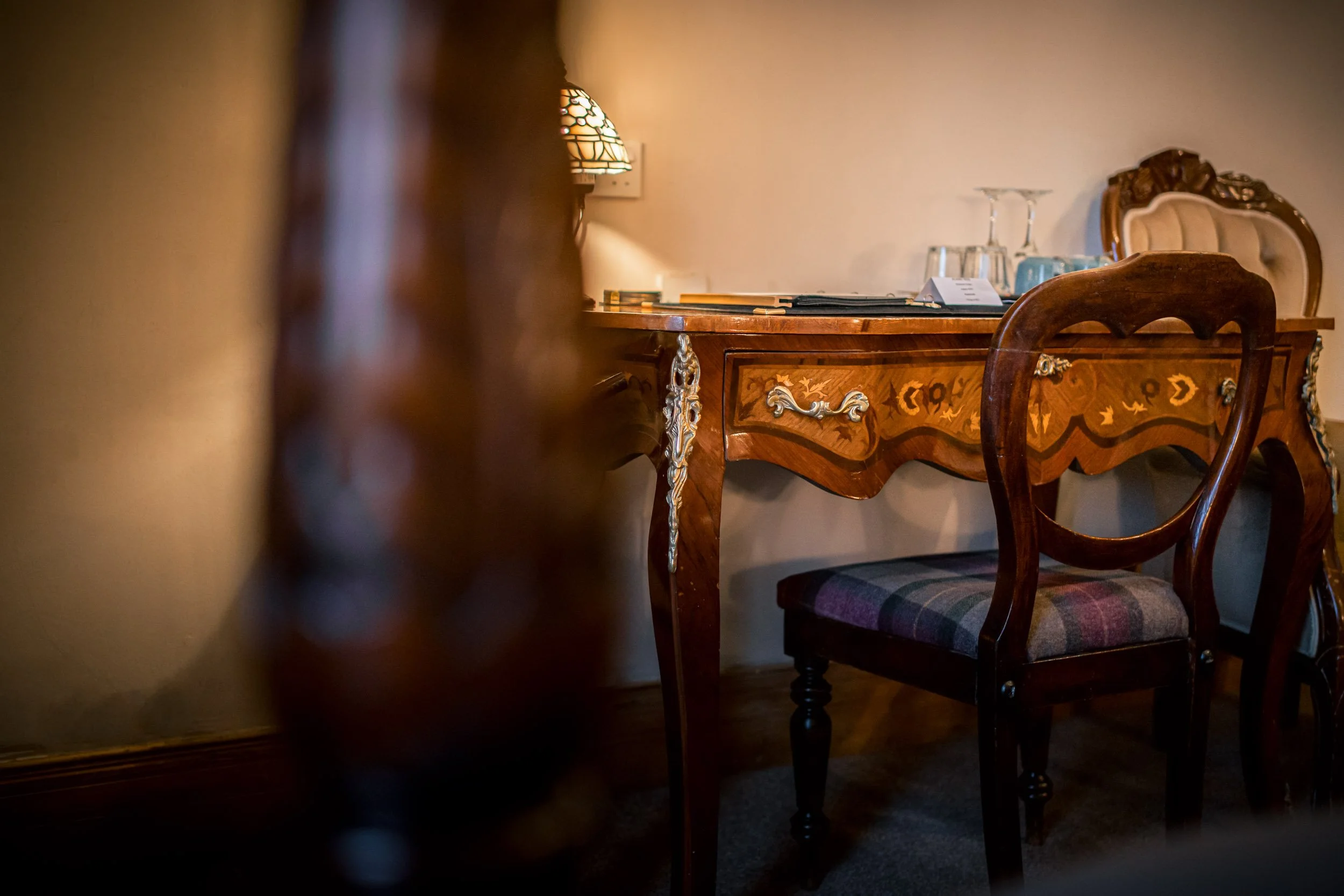Your room offers a beautifully contemplative space, perfect for the creative mind or taking in the spirit of Scotland. While your unique, contemporary en-suite offers the drama of nature with a live-edge wood vanity and hand-carved stone basin.